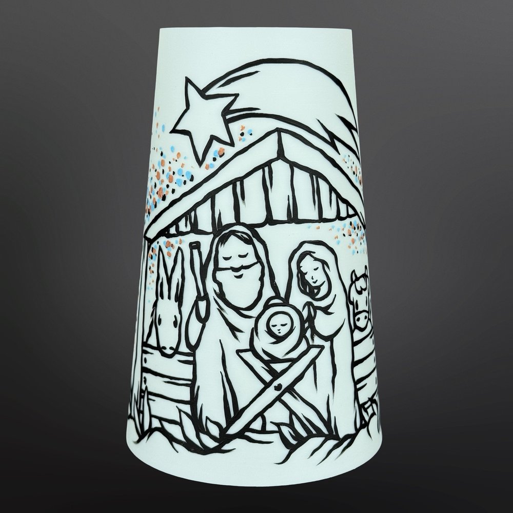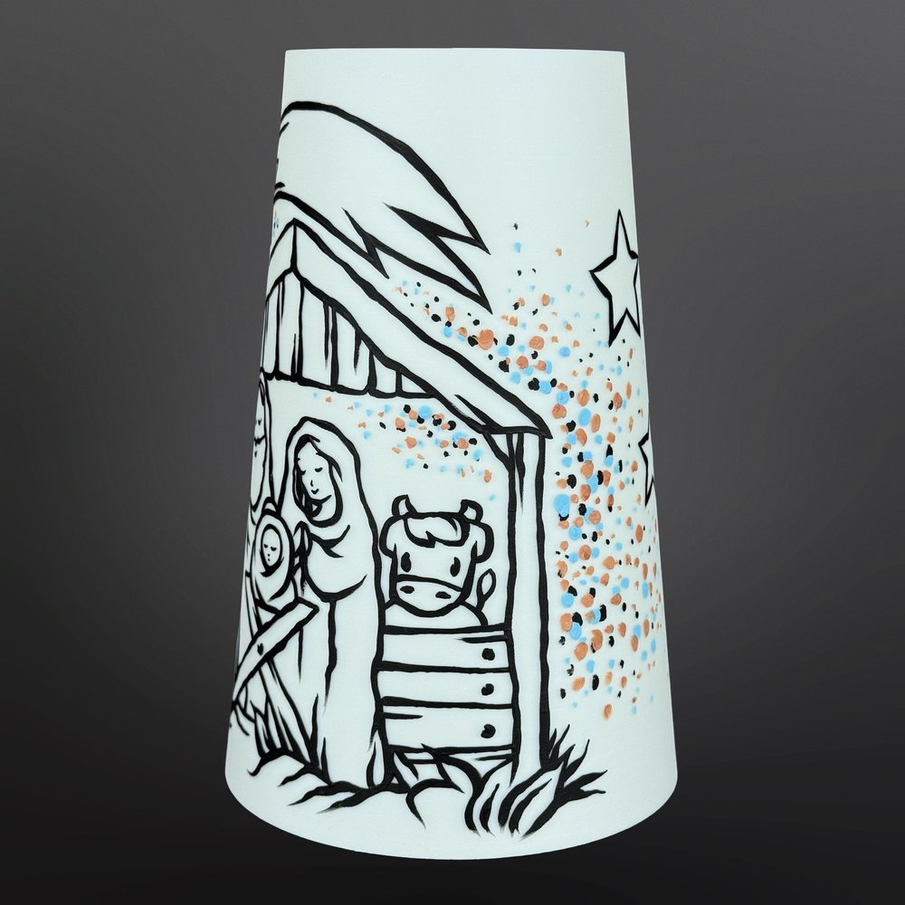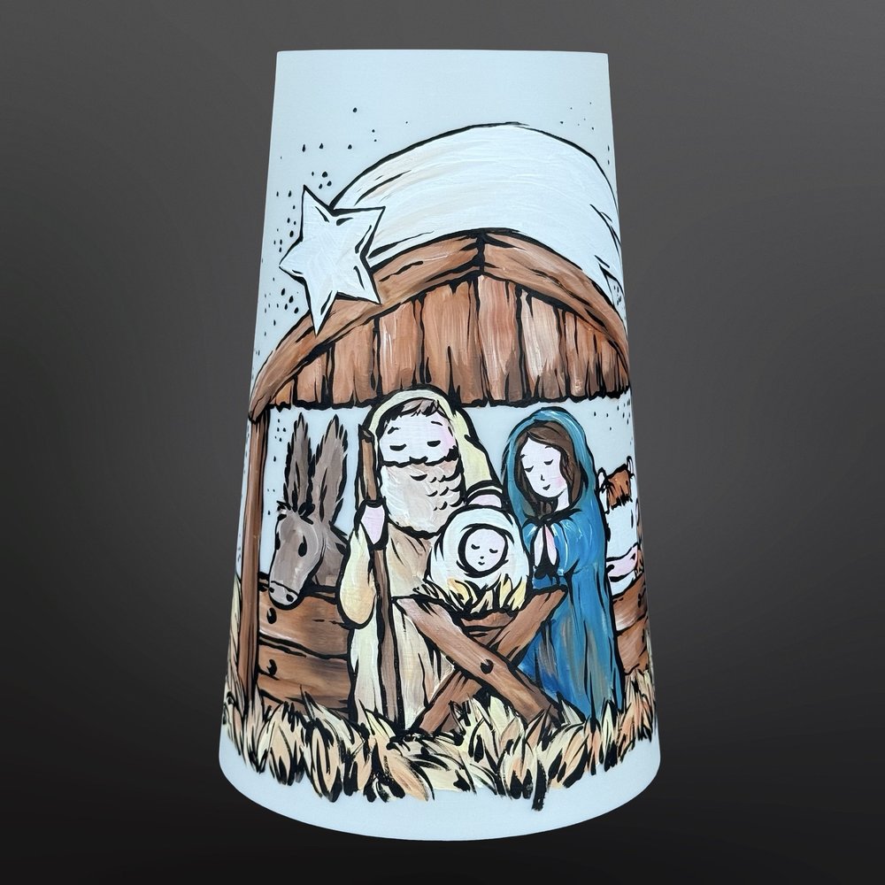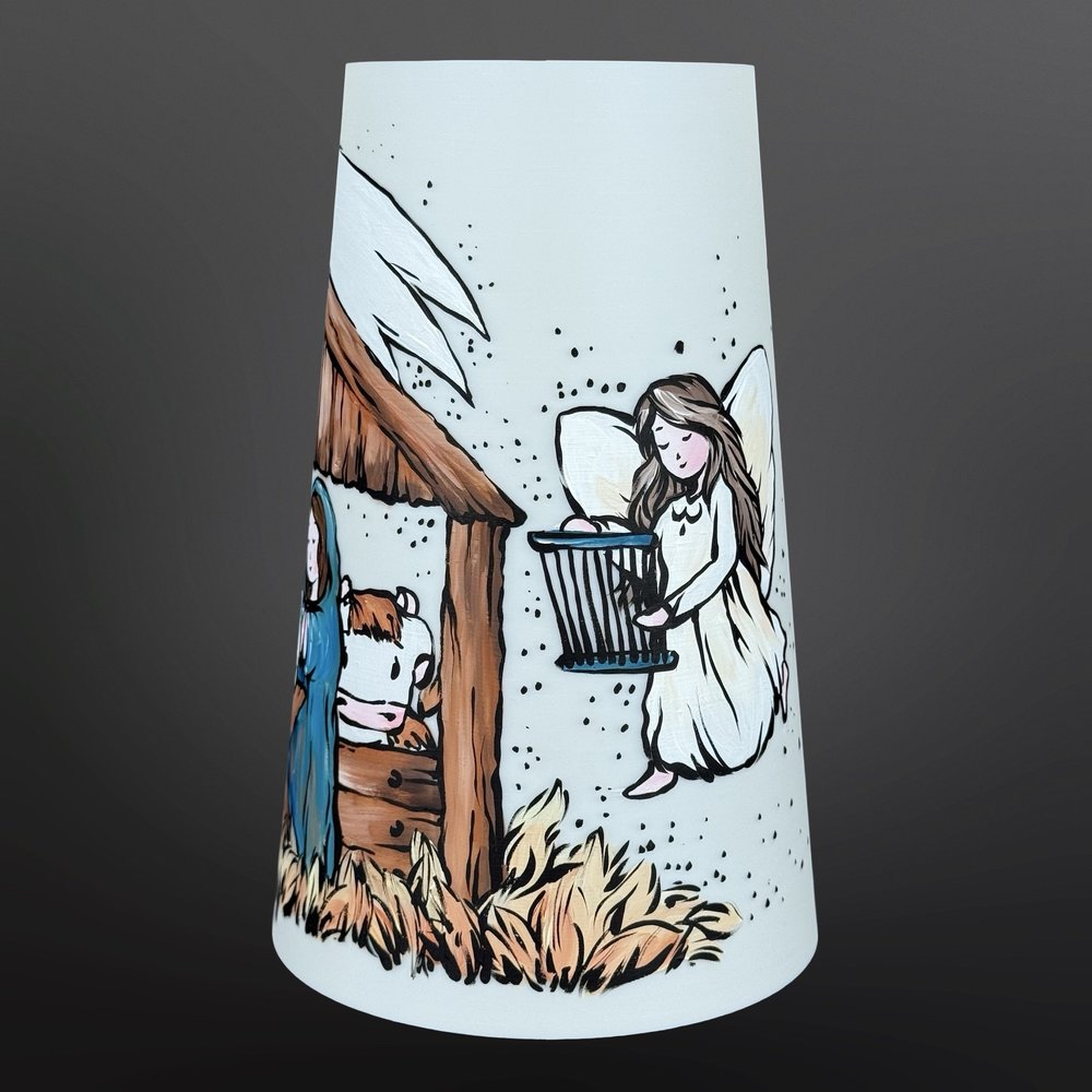 Lampa Betlém je ručně malovaná dekorativní lampa, která do interiéru přináší kouzlo Vánoc, klid a teplé světlo. Motiv betléma je malovaný s jemnými detaily a příjemnými barvami, které krásně vyniknou jak za denního světla, tak po rozsvícení. Večer vytvoří útulnou atmosféru pro rodinné chvíle, adventní večery i tiché chvíle odpočinku.