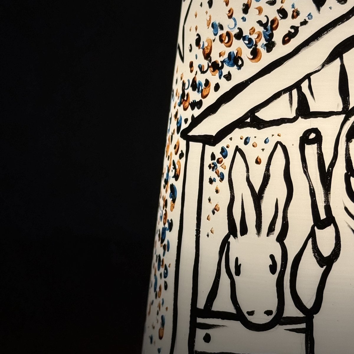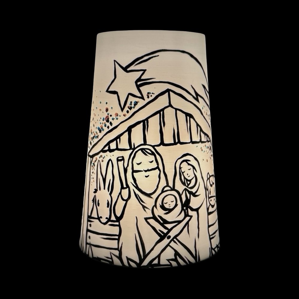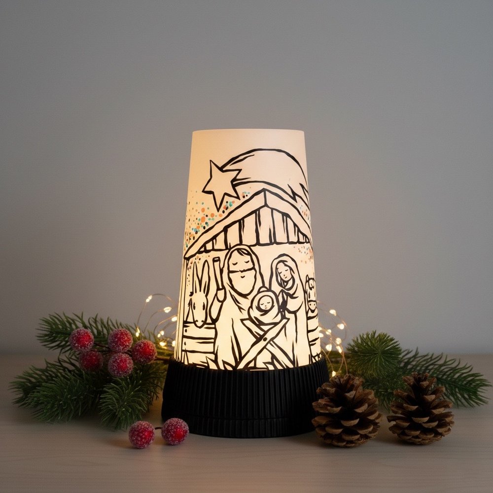 Lampa Betlém je ručně malovaná dekorativní lampa, která do interiéru přináší kouzlo Vánoc, klid a teplé světlo. Motiv betléma je malovaný s jemnými detaily a příjemnými barvami, které krásně vyniknou jak za denního světla, tak po rozsvícení. Večer vytvoří útulnou atmosféru pro rodinné chvíle, adventní večery i tiché chvíle odpočinku.
