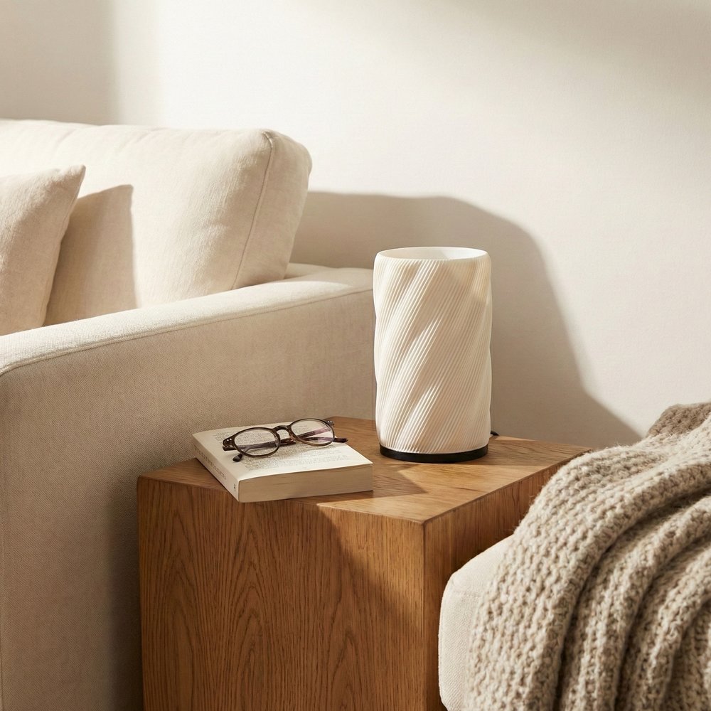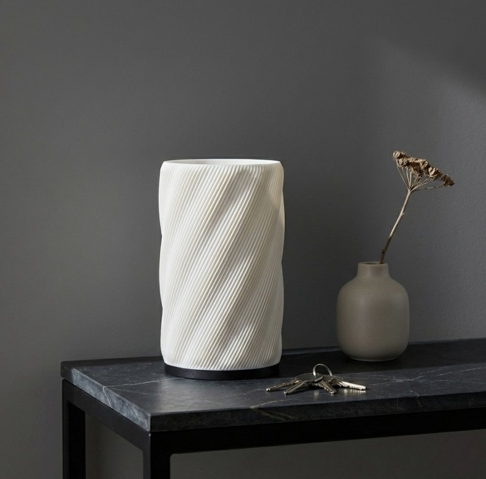 Designová lampa Fuego Wave s jemně zvlněným difuzorem vytváří měkké, příjemně rozptýlené teplé světlo. Struktura "vlny" dodá lampě moderní výraz a zároveň navodí klidnou atmosféru – ideální na noční stolek, komodu nebo jako stylový doplněk do obýváku.