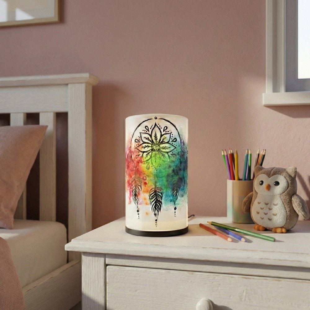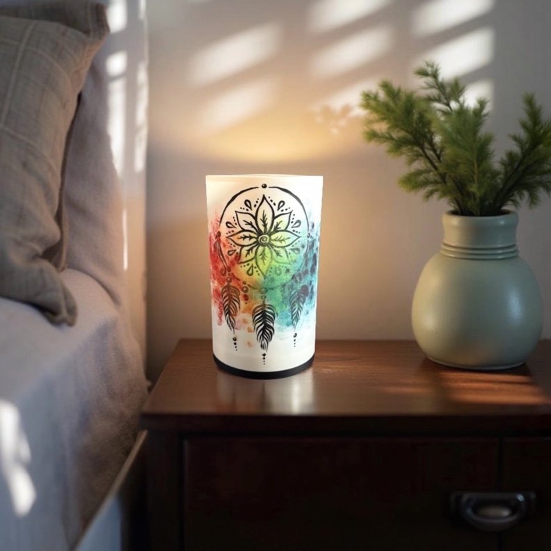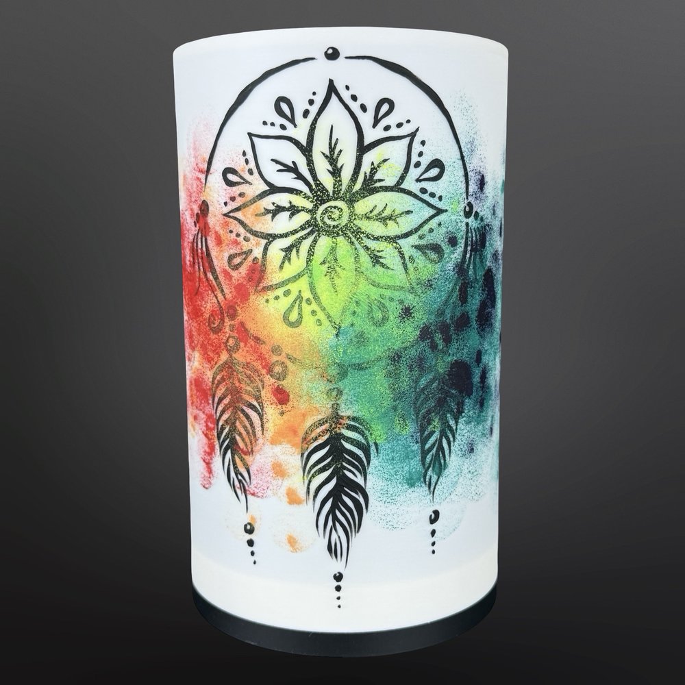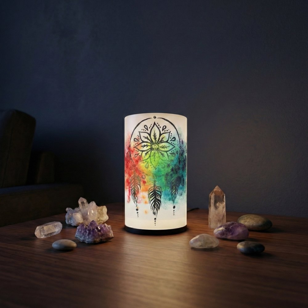 Ručně malovaný motiv lapače snů přináší do prostoru klidnou energii a symbol ochrany před negativními sny. Tato lampa je nejen zdrojem světla, ale také jemnou dekorací, která vytváří útulnou a pozitivní atmosféru. Skvěle se hodí do moderního i boho interiéru – jako osobitý prvek s hlubším významem.