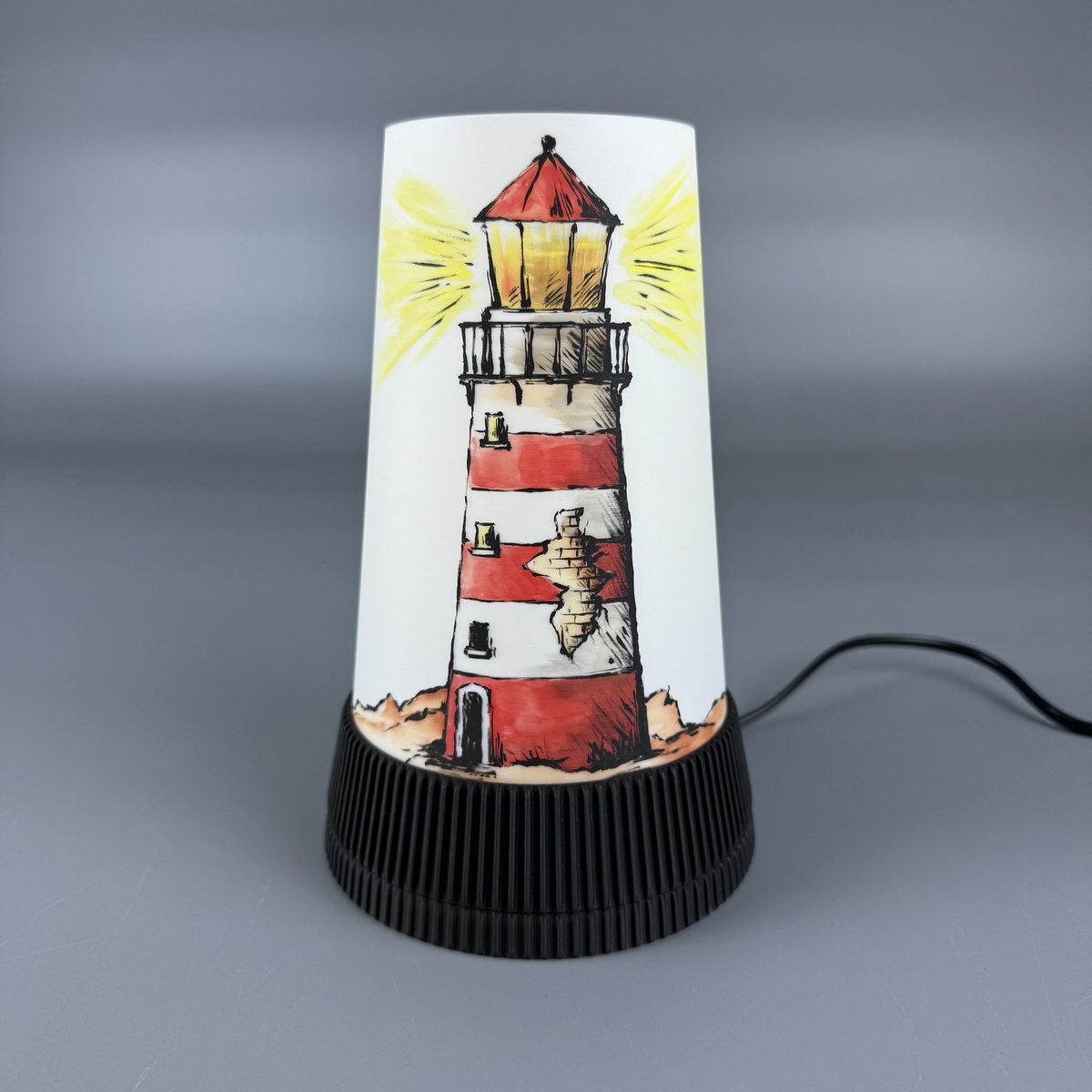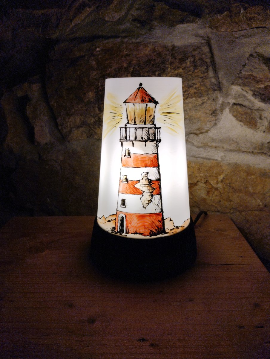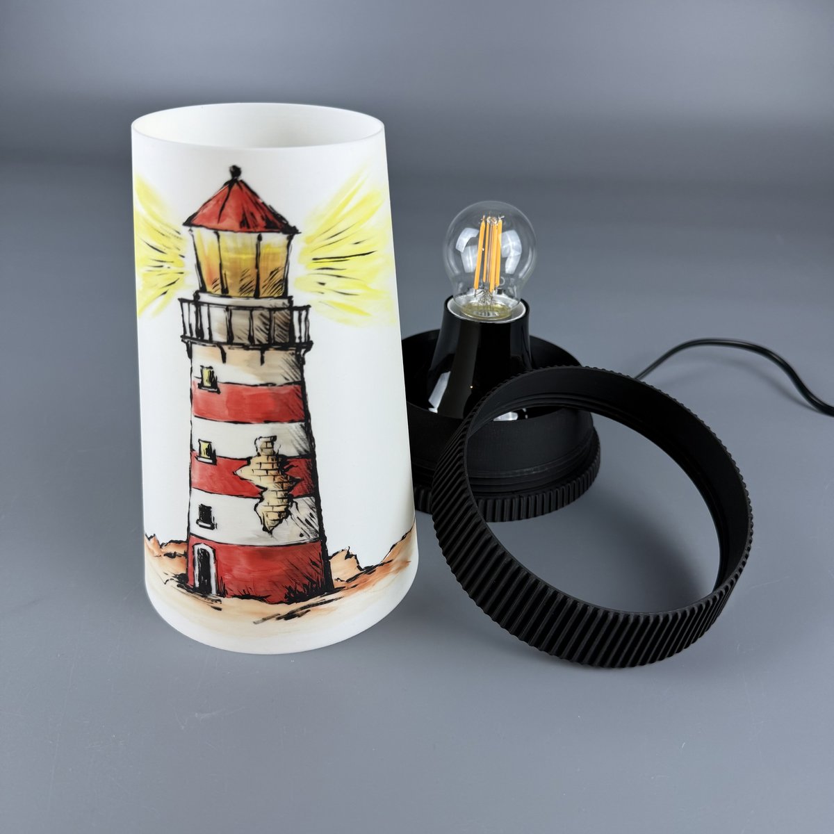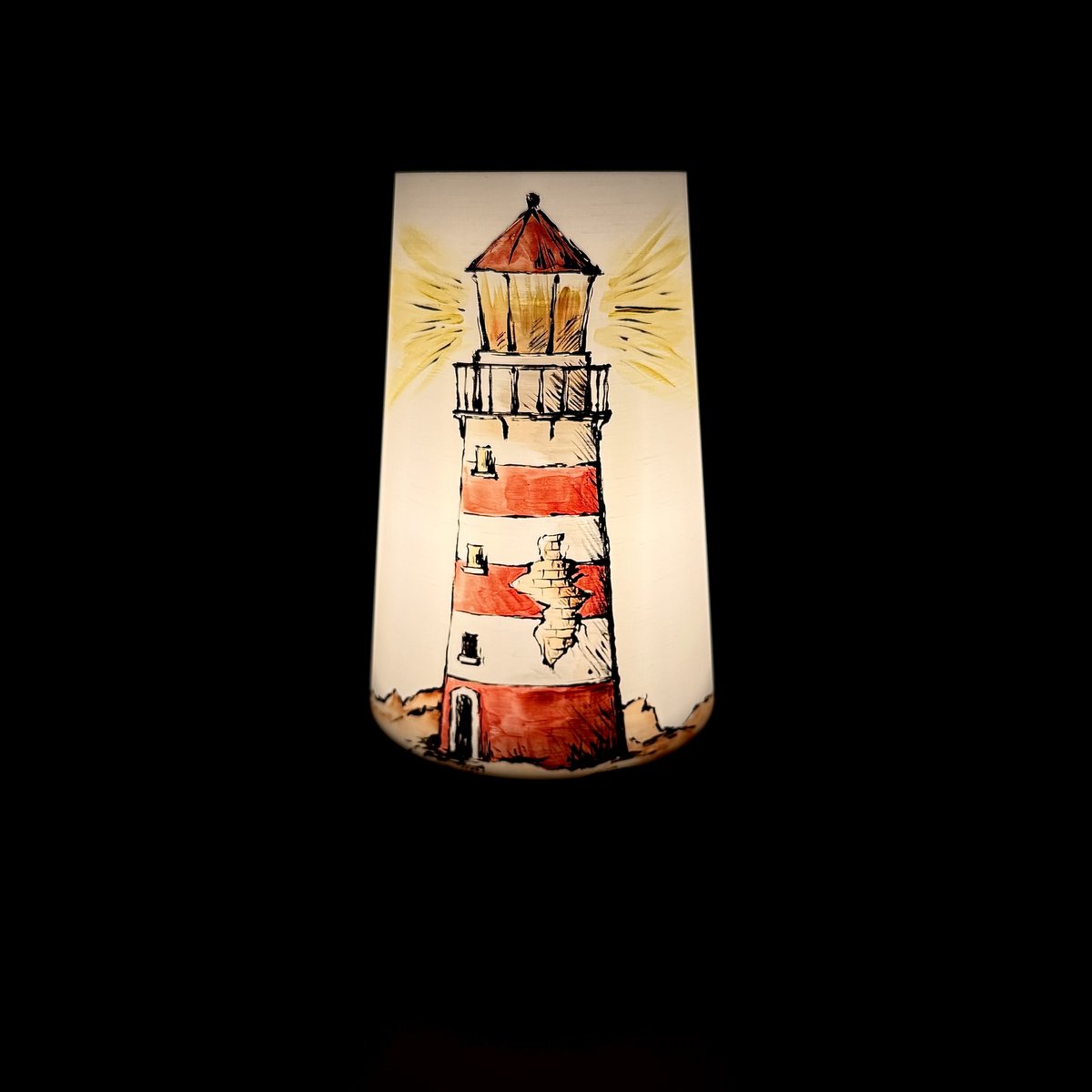 Ručně malovaná dekorativní lampa s motivem majáku symbolizuje světlo, klid a bezpečný návrat. Paprsek světla, který maják vysílá do tmy, představuje naději, směr a vnitřní rovnováhu. Jemné teplé světlo lampy vytváří uklidňující atmosféru a promění váš interiér v místo, kde můžete zpomalit, nadechnout se a cítit se v bezpečí.