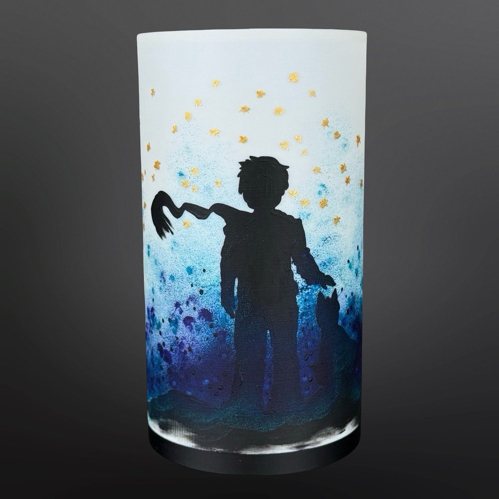 Ručně malovaný motiv Malého prince připomíná dětskou nevinnost, přátelství a krásu jednoduchosti. Tato lampa není jen praktickým světelným doplňkem, ale i symbolickým prvkem, který otevírá prostor pro snění a vyprávění. Skvěle se hodí do dětského pokoje i do interiéru, kde chcete podtrhnout jemnou a poetickou atmosféru.