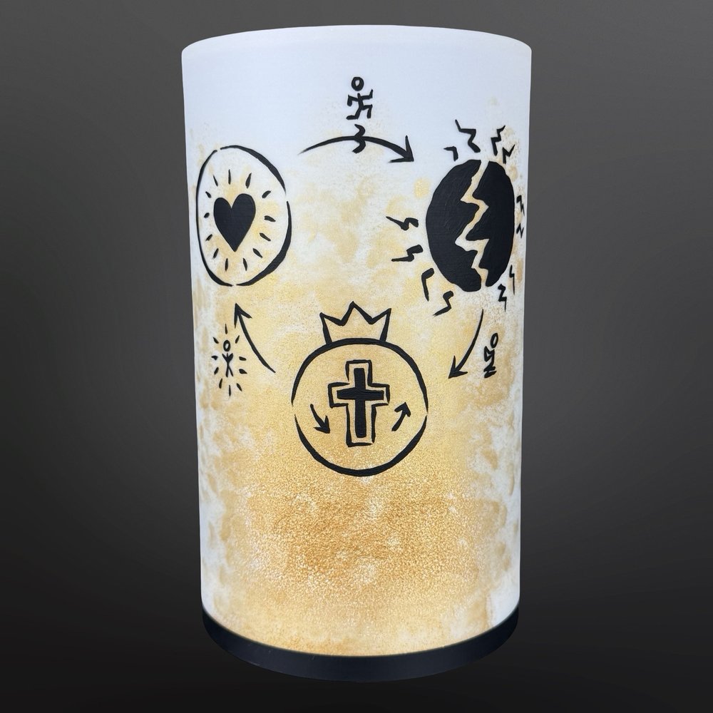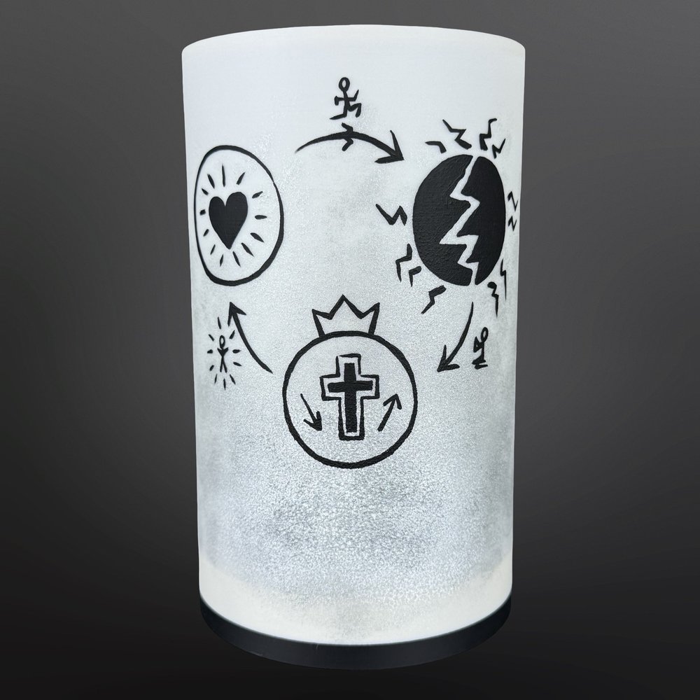 Tento motiv vychází z myšlenky návratu – symbol tří propojených částí ukazuje, kde se právě nacházíme, a jak se můžeme skrze Ježíše vrátit k Božímu původnímu plánu. Je to příběh o odpuštění, naději a novém začátku.