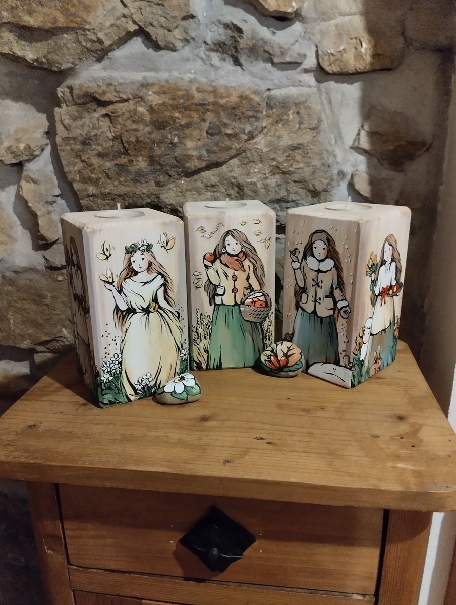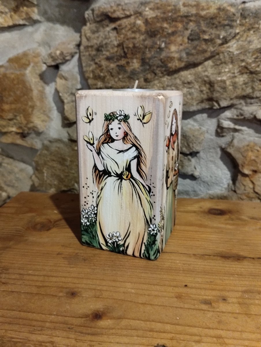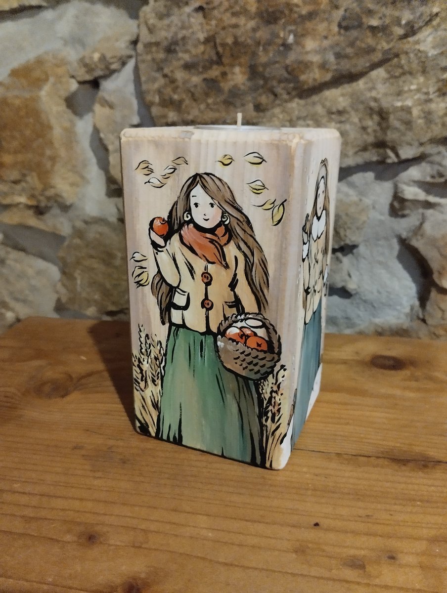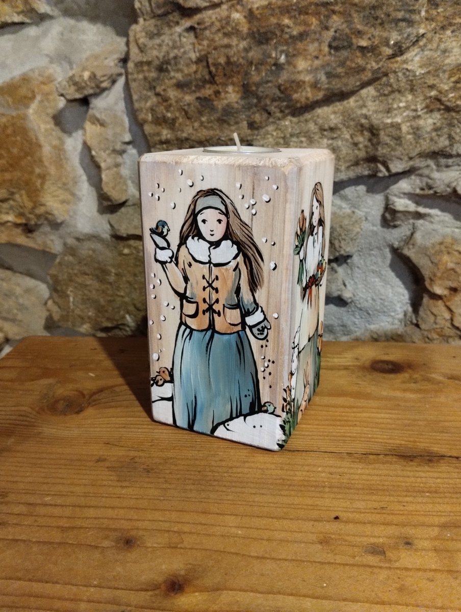 Celoroční dřevěný svícen s originální ruční malbou. Každý kus je jedinečný a díky malbě ze všech stran působí jako malý umělecký kousek. Elegantní dekorace, která vnese do domova hřejivou atmosféru a zároveň poslouží jako originální dárek.