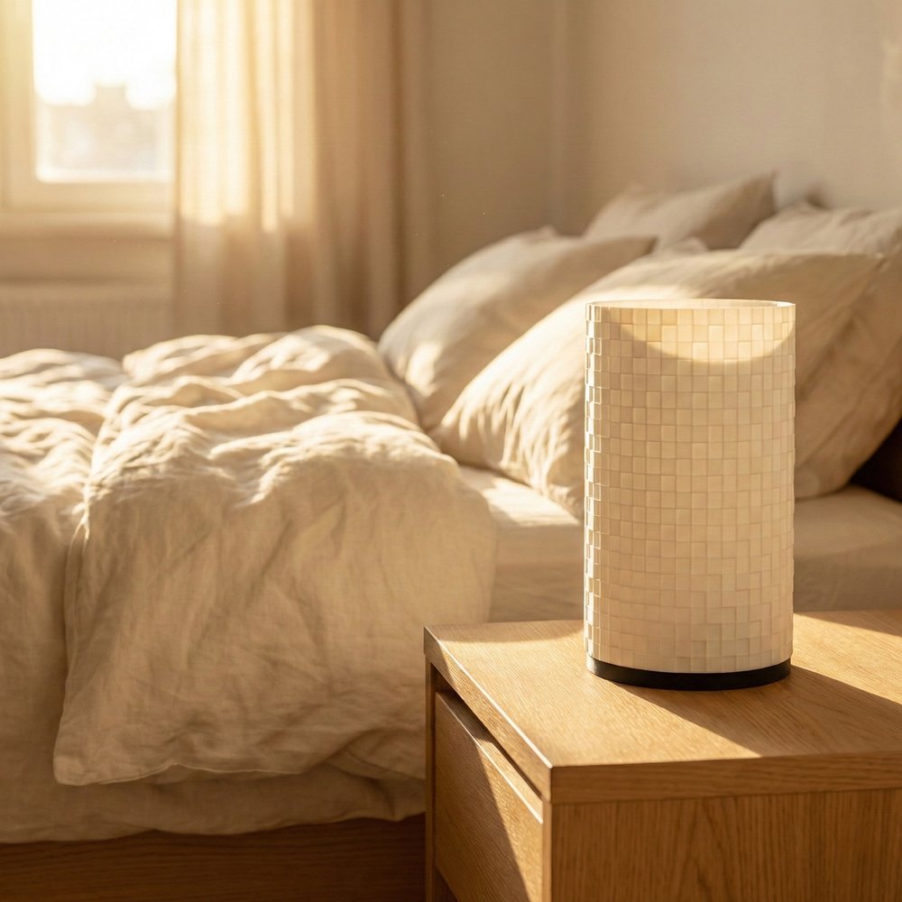 Moderní lampa Twister s jemným "kostkovaným" vzorem působí čistě, současně a přitom originálně. Teplé světlo se přes difuzor příjemně rozptýlí do prostoru a vytvoří klidnou atmosféru – ideální na komodu, noční stolek i do moderního obýváku.